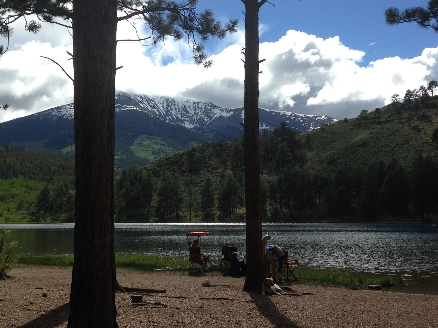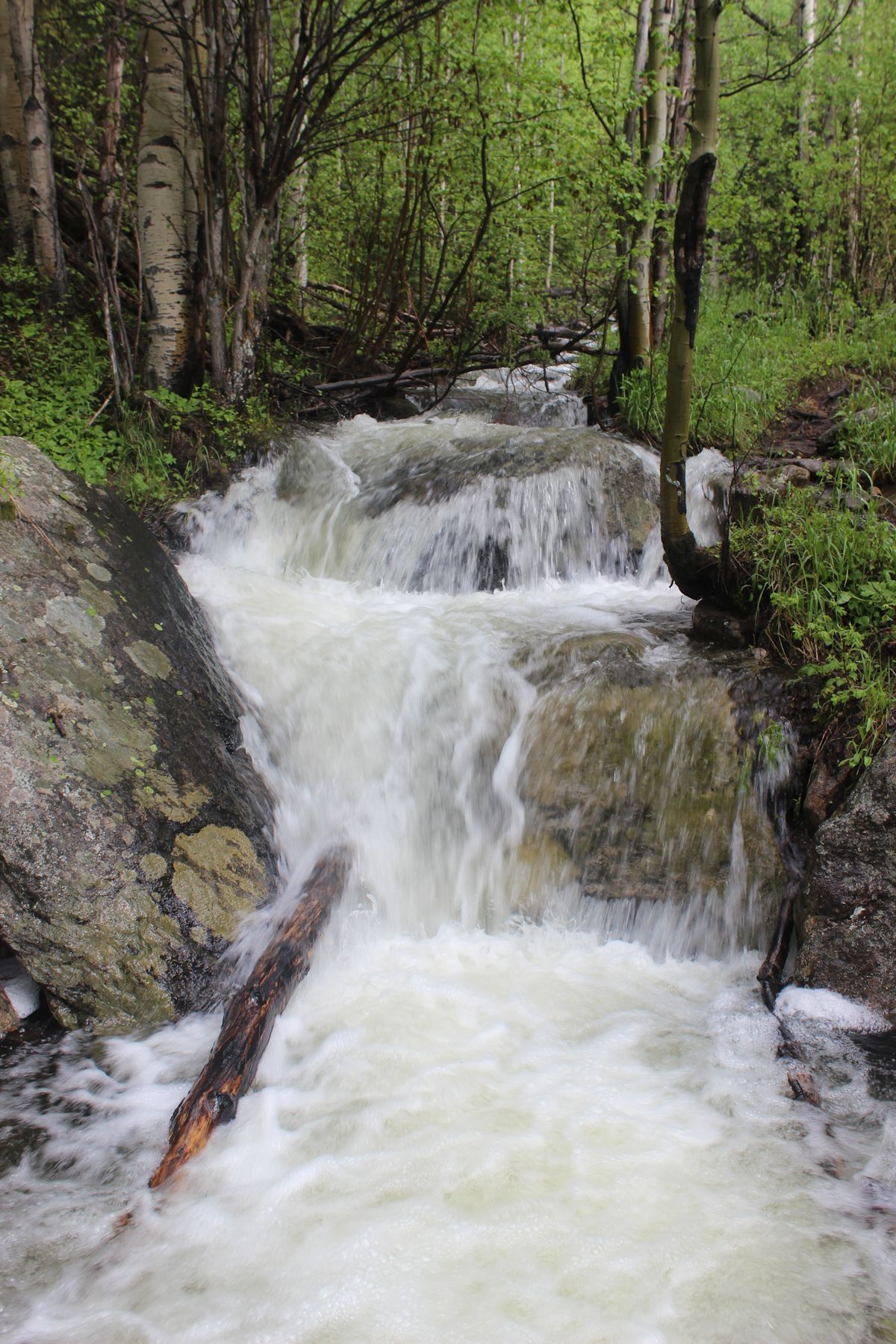 On the way back down, singing, “I love going downhill. I love going downhill,” we ran into a couple of Park Rangers who were a little surprised that some of us made it all the way up to Emerald Lake, because of all the late-in-the-season snow still left on the trail. We also pondered the bravery, expressions of misery, and altitude fatigue of tennis-shoe and t-shirt dressed families whose fathers carried wee children and babies in shaded, framed enclosures like donkeys.